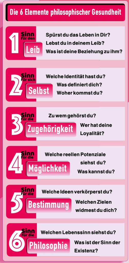 Philosophische Beratung stärkt Ihre Fähigkeit, über das Wesentliche nachzudenken und ein tieferes Verständnis für sich selbst und die Welt zu gewinnen. Anders als therapeutische Ansätze zielt sie nicht primär auf Heilung, sondern darauf, Ihre philosophische Gesundheit zu fördern – indem wir gemeinsam Klarheit über Ihre Lebensfragen schaffen und Ihre Überzeugungen in eine stimmige Ordnung bringen. In diesem Zusammenhang reden wir auch von Sinnstiftung (sense-making):